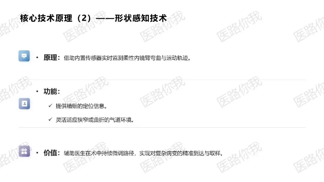 形状感知技术:内置传感器实时监测内镜臂的弯曲与轨迹,解决“够不着”的问题。