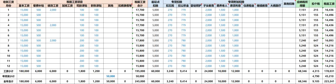 【个人全年税后工资预测表】