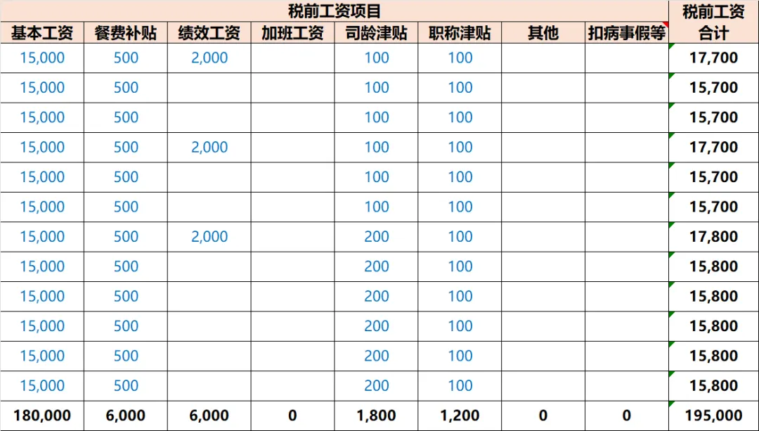 1、A列月份为实际收到的月份,大部分人1月收到的可能是去年12月的工资
