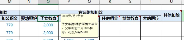 专项附加扣除每一项都加了一些注释: