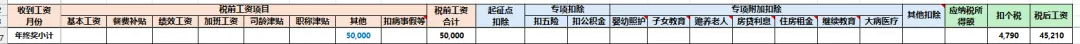 5、年终奖是单独计税,也考虑进来了: