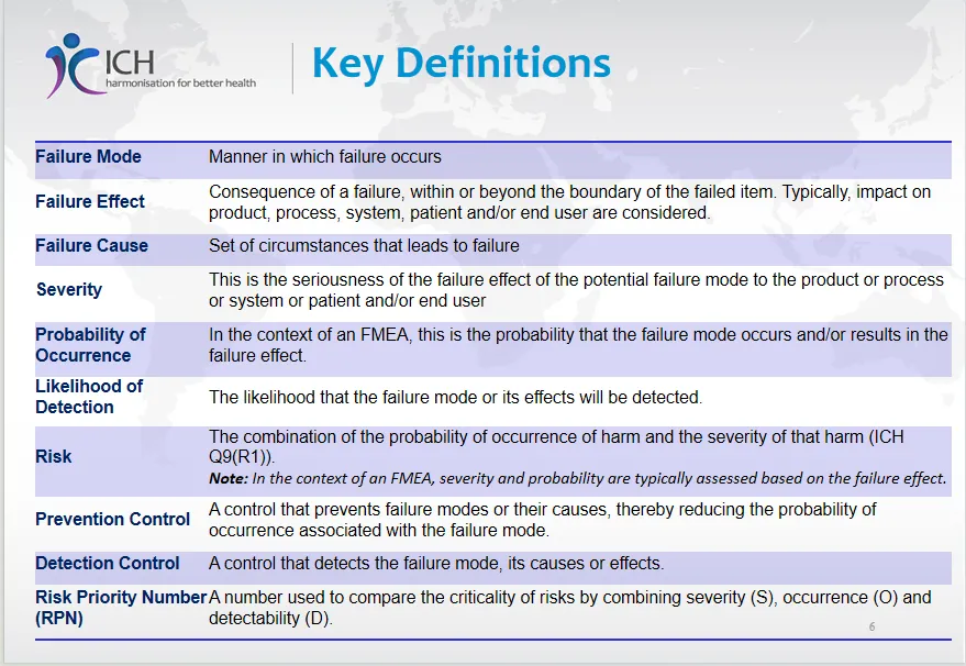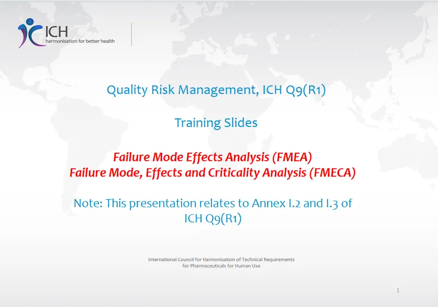 2026年03月ICH发布质量风险管理(ICH Q9(R1)) 的培训材料,其中一章节重点讲解了失效模式与影响分析(FMEA)和失效模式、影响与危害性分析(FMECA) 这两种风险管理工具。以下是详细总结:一、 核心概念与定义