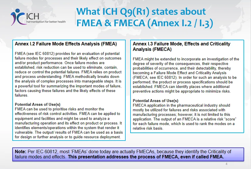 ICH发布《Q9(R1)培训PPT》:失效模式效应分析(FMEA)失效模式、效应及危害性分析(FMECA)
