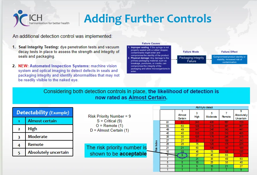 - 步骤6:实施额外控制并重新评估 - 例如,增加自动化检测系统(机器视觉)作为新的检测控制。这使得可检测性从“中等”提升至“几乎肯定”。重新计算后,RPN显著降低,风险变为可接受。