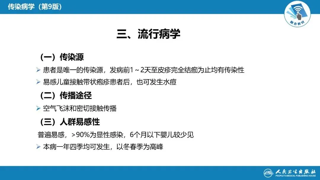 水痘作为儿科及临床常见的病毒性传染病,是医护人员日常诊疗、医学生备考的基础考点,掌握其诊疗规范与防控要点尤为重要。本次我们全新上线水痘精品 PPT 学习资料,这份资料由中国医科大学窦晓光教授相关课件整理而成,严格贴合《传染病学(第 9 版)》教材,内容专业系统、重点突出,是临床医护诊疗参考、教学备课、考点梳理的优质素材!