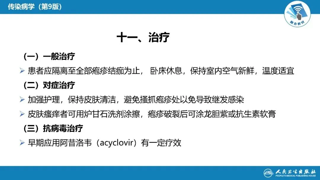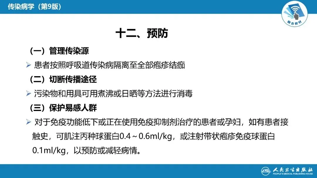 PPT 中不仅有基础理论知识,还标注了临床诊疗的注意事项,比如水痘隔离时限、糖皮质激素的使用禁忌、易感人群的预防干预等实用要点,既能帮助医学生搭建完整的知识框架,也能为临床医护人员提供直接的诊疗参考,省去大量整理资料的时间。