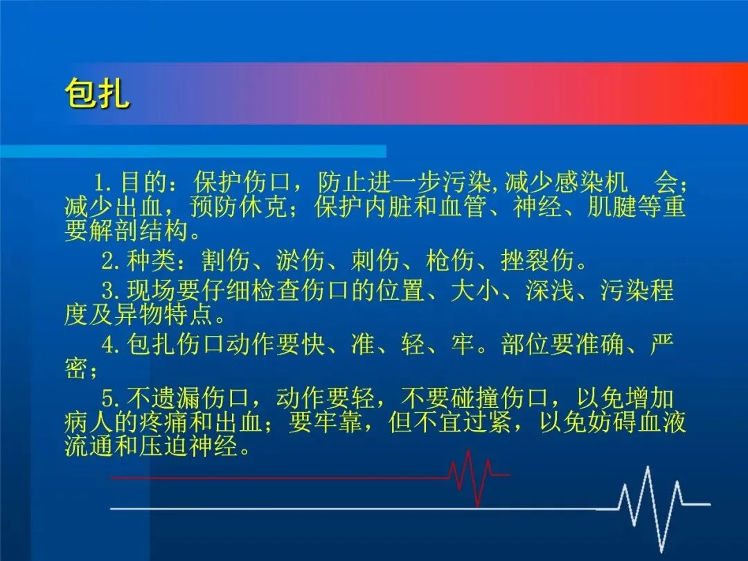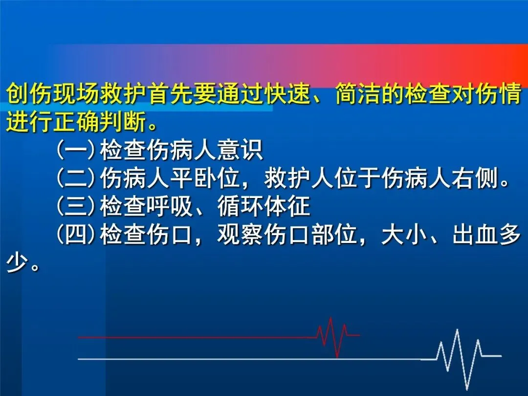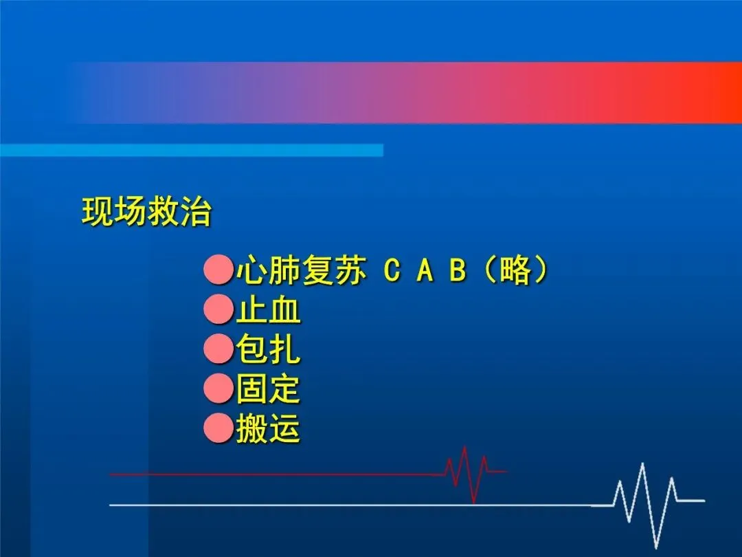 这份 PPT 适用于临床医护人员日常工作复盘、急救技能培训,也适合医学生夯实创伤急救理论与实操基础,不管是技能考核、岗前培训还是临床应急参考,都是超实用的资料。精准对接临床急救的实际需求,把创伤急救的核心要点讲透学懂,需要的小伙伴别错过!