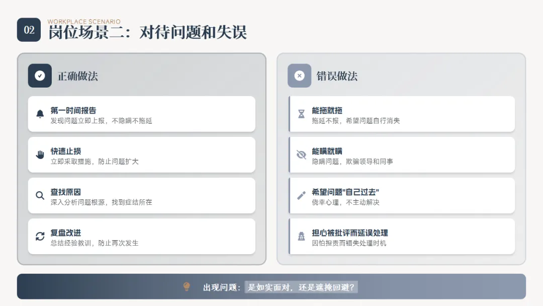 遇到困难和失误,你是如实坦诚沟通,还是选择隐瞒掩盖?这体现了你是否