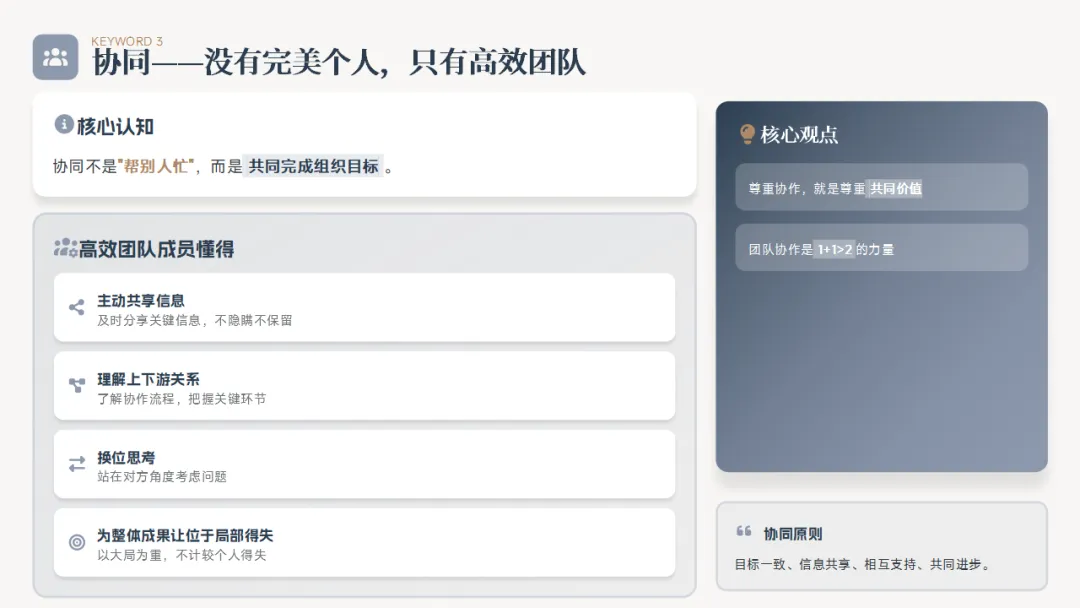 ,提升团队协作效率和执行力,1+1才能大于2。
