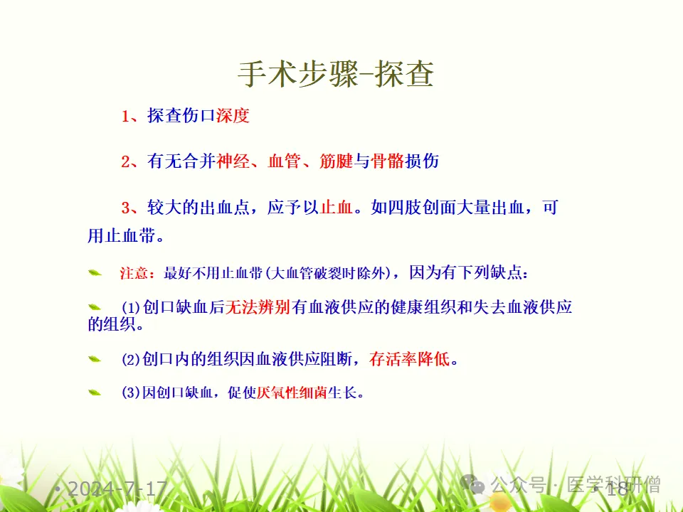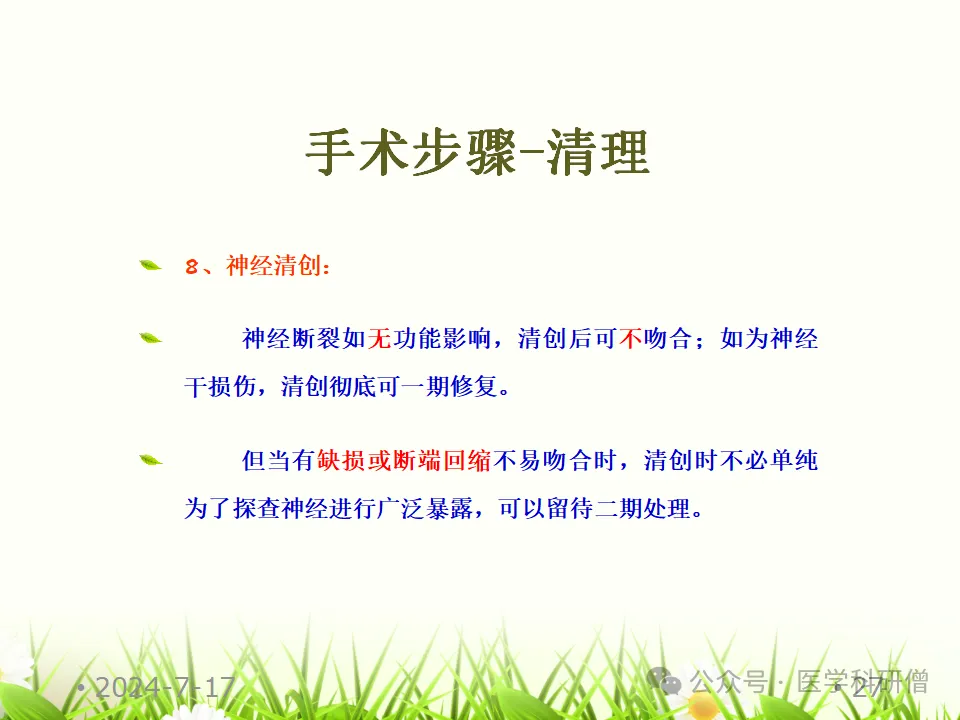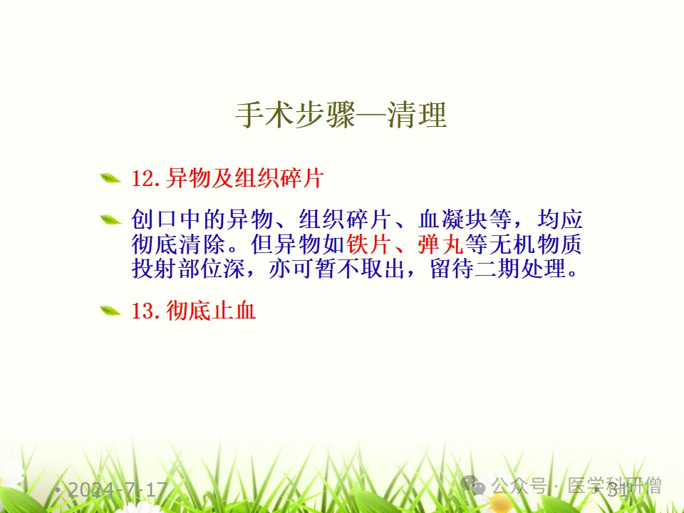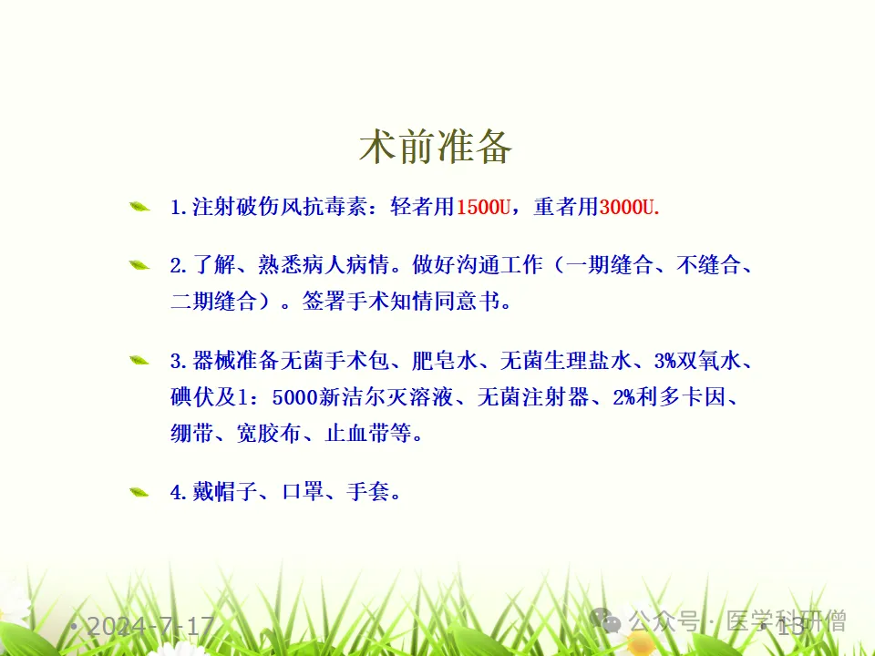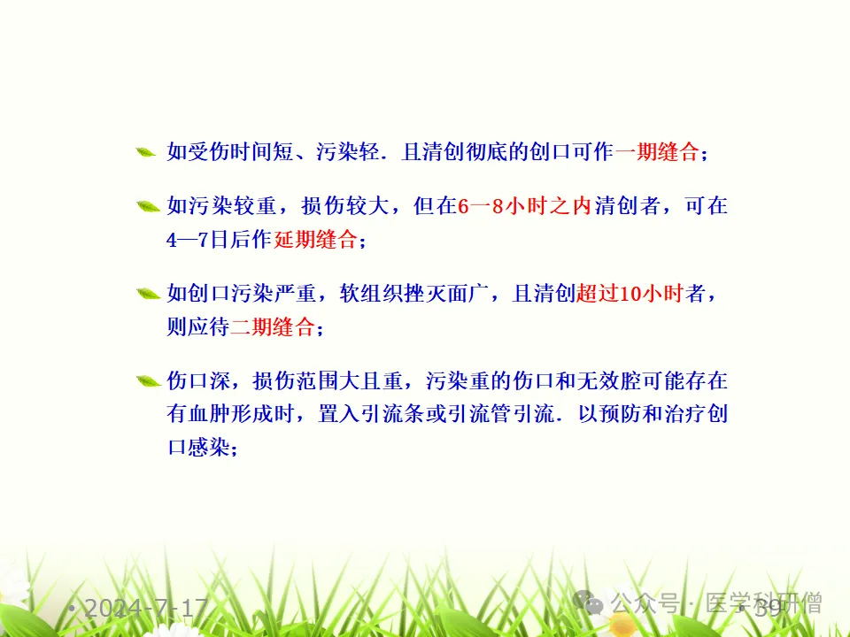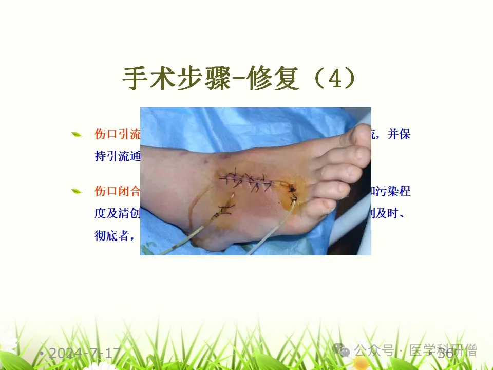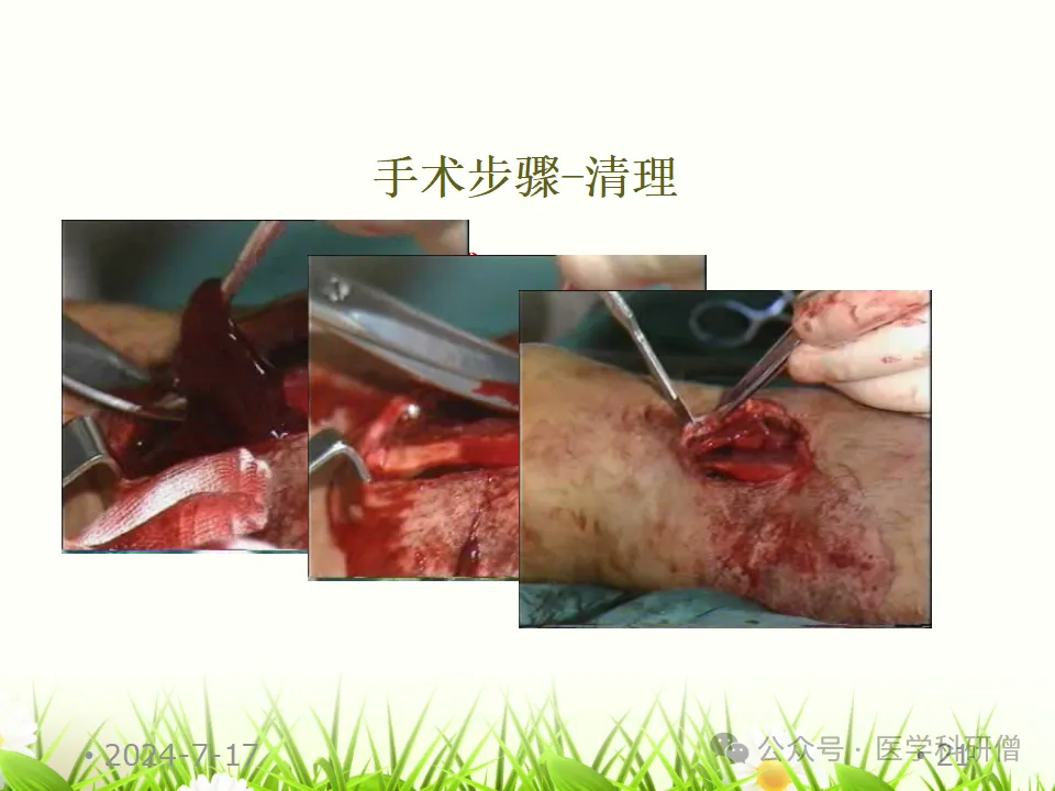 2. 伤口闭合:根据伤口情况,选择一期缝合或延期缝合,以促进伤口的愈合。