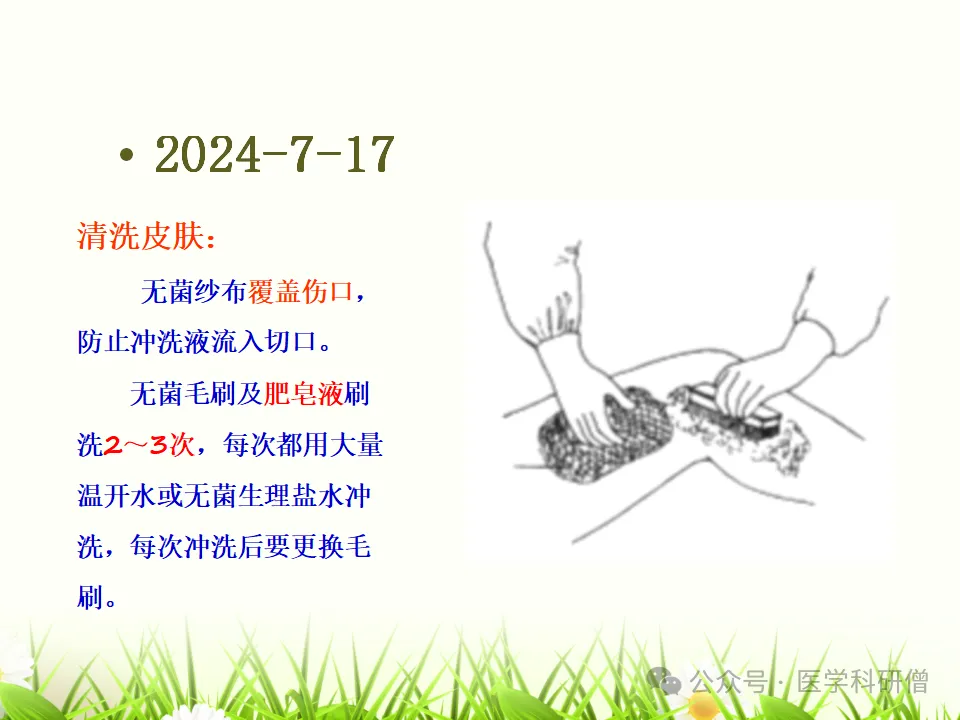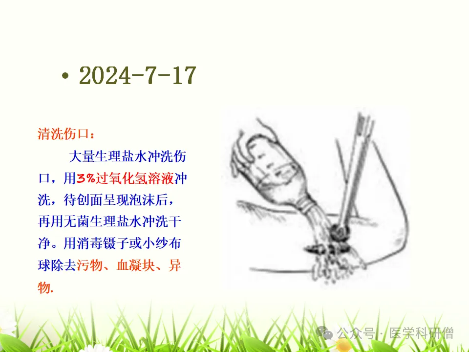 3. 再次清洗:使用无菌生理盐水再次冲洗伤口,确保伤口的清洁。