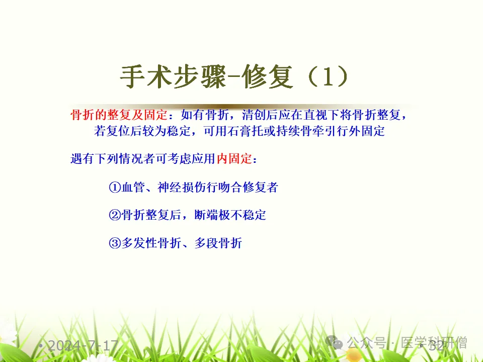 7. 骨折处理:对骨折断端进行清创,清除异物及组织碎片,并进行彻底的止血。
