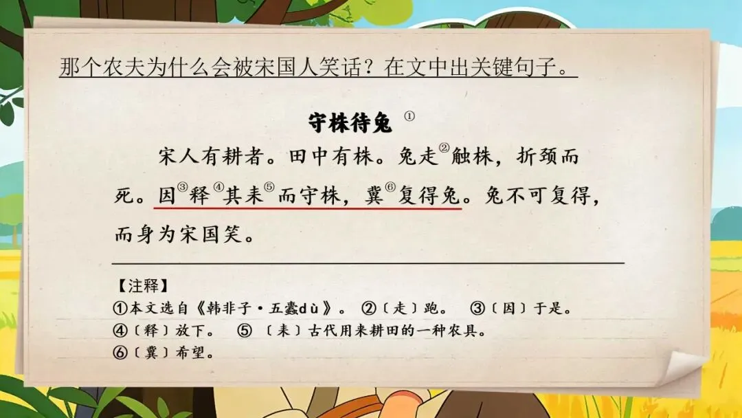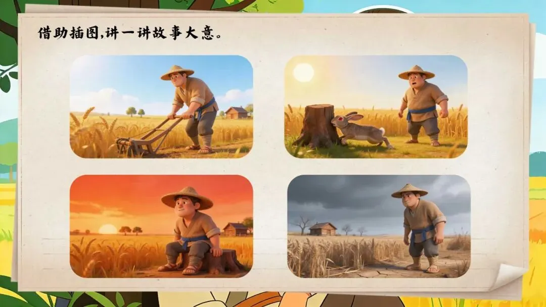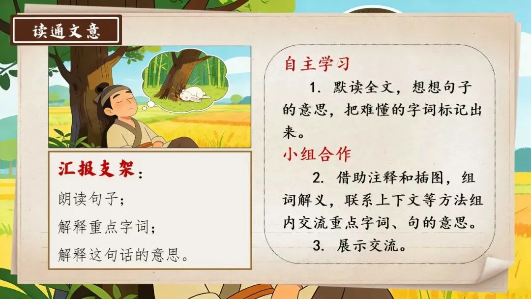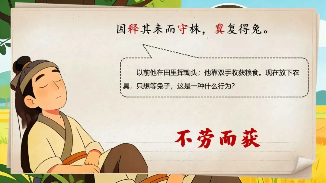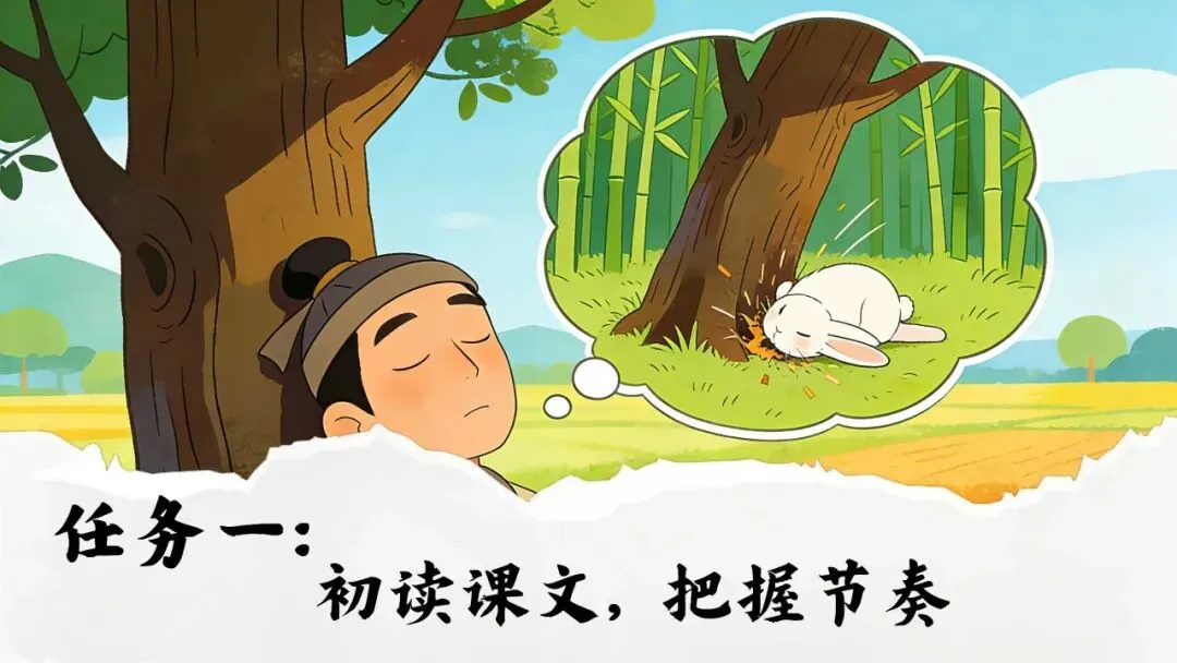 >三下新版《守株待兔》:44页公开课PPT + 教学设计+逐字稿+板贴
