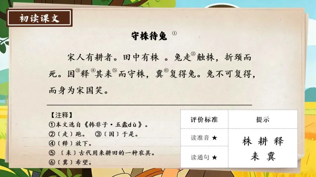 三下新版《守株待兔》:44页公开课PPT + 教学设计+逐字稿+板贴