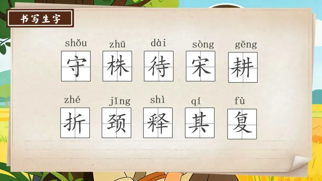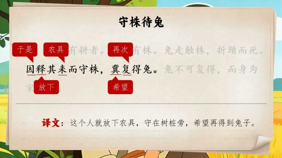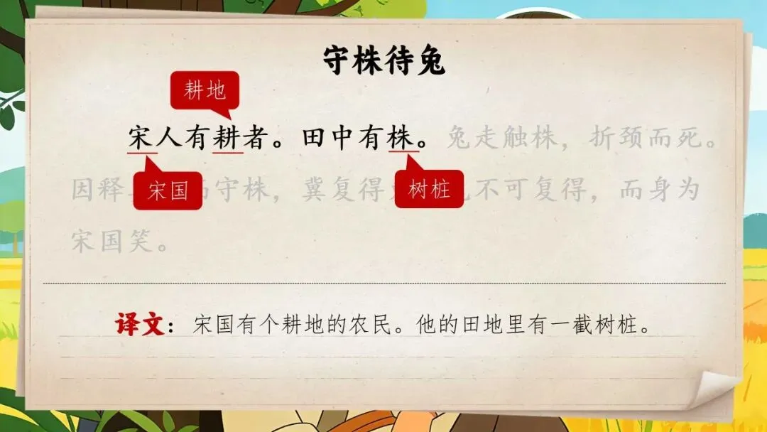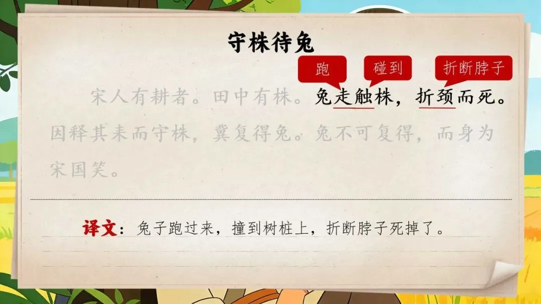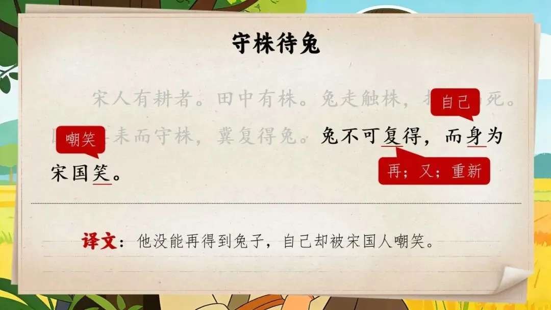 以上为三年级下册《守株待兔》全部内容,