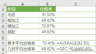 除了trimmean修剪平均值函数,Excel 2016中还有两个特殊的平均值函数,harmean调和平均值函数和geomean几何平均值函数。