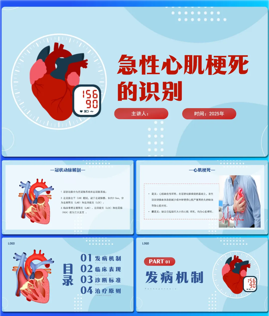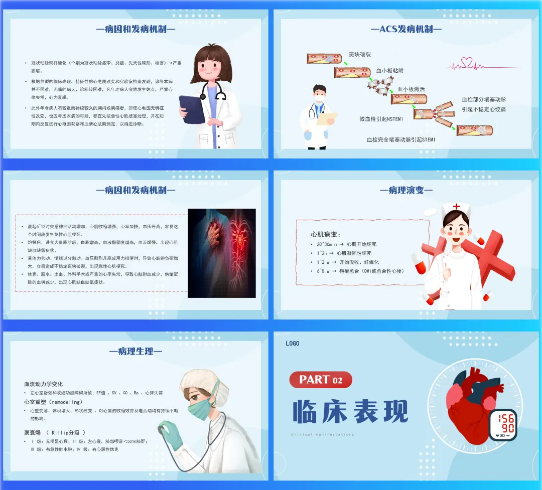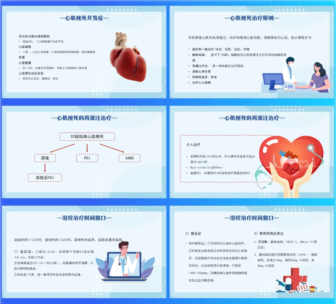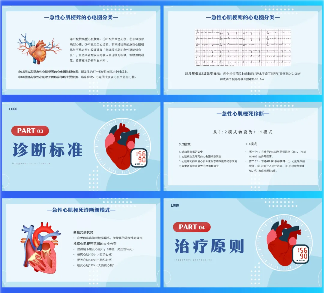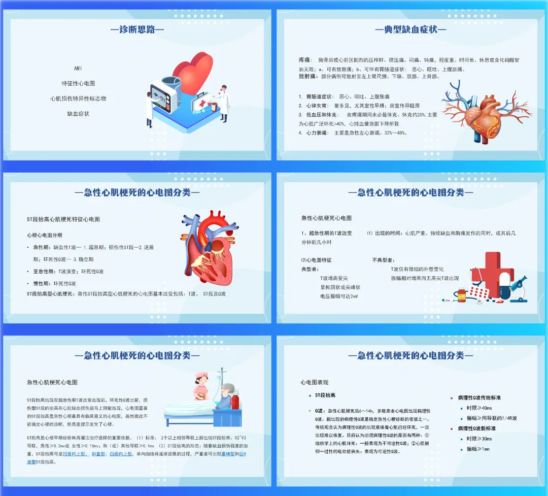 我是医览PPT,专注医护PPT课件,每天给大家带来各类医护课件(完整课件获取方式请看文末)时间就是心肌,时间就是生命。今天带来的是“急性心肌梗死的识别”,一份从发病机制到治疗决策,帮你快速锁定心电图演变与心肌标志物,构建清晰急诊思维的速查手册。