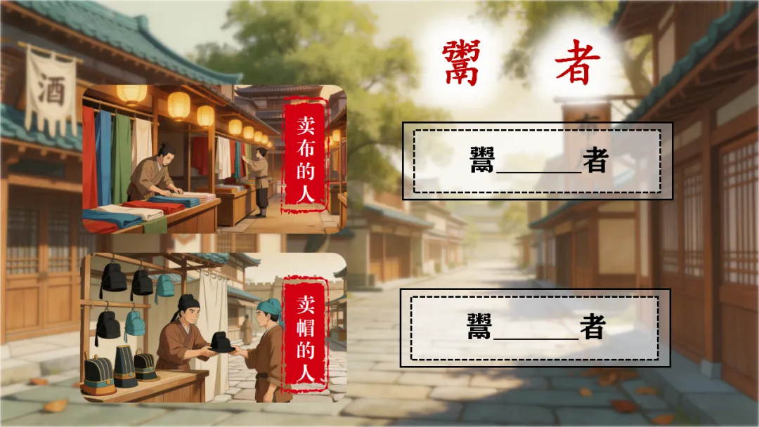 师:楚人满心欢喜想着今天定要大赚一笔时: