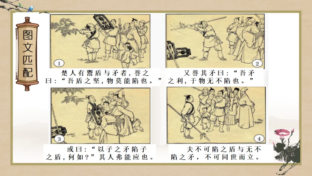 3.能联系上下文,猜测“弗”“誉”“立”的意思,并能用自己的话讲述“自相矛盾”的故事。