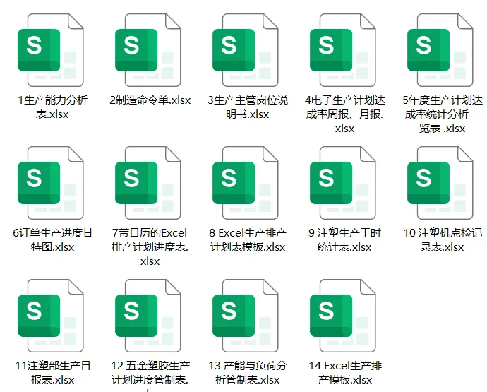 这14套模板涵盖了生产管理的核心场景:有计划、有执行、有记录、有分析。
