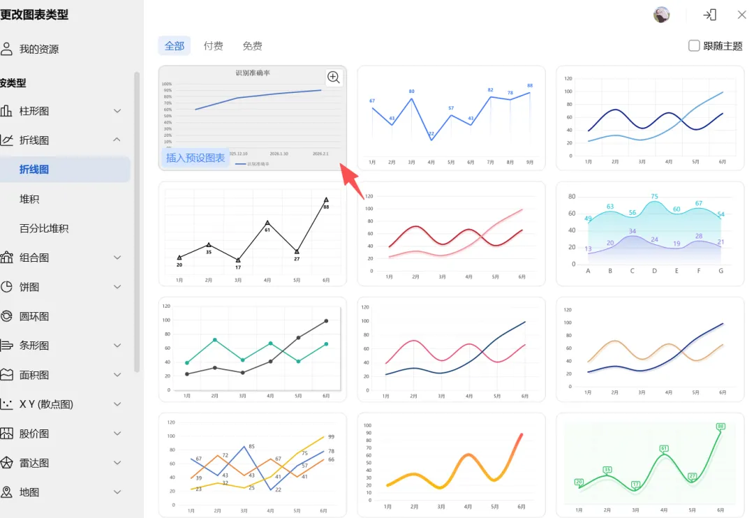 ”,此处示例图表选择“折线图”。