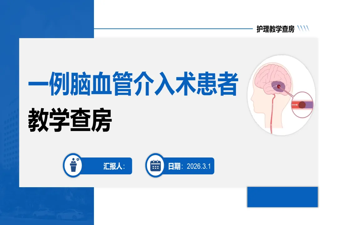 🍎内容:一例脑血管介入术患者教学查房-医护PPT模版
