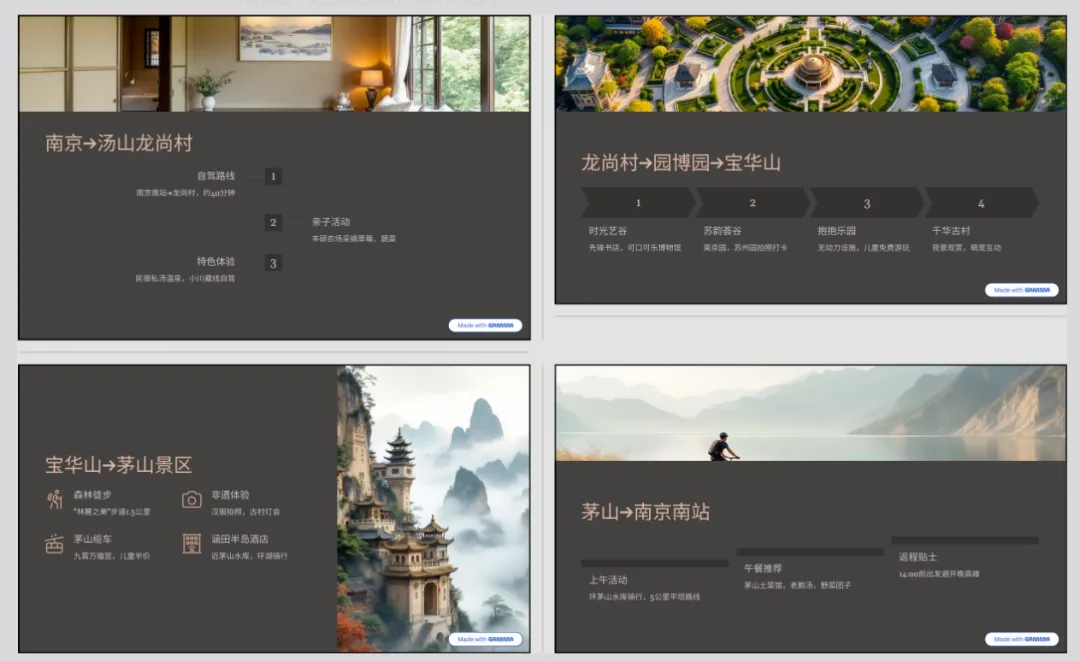 就算是最基础的“一键生成”,Gamma的出品也吊打同行!它的排版逻辑极度舒适,特别是对付那些让人头大的数据图表、时间轴,一键就能切换好几种高级的展示形式,图文混排的审美完全在线。