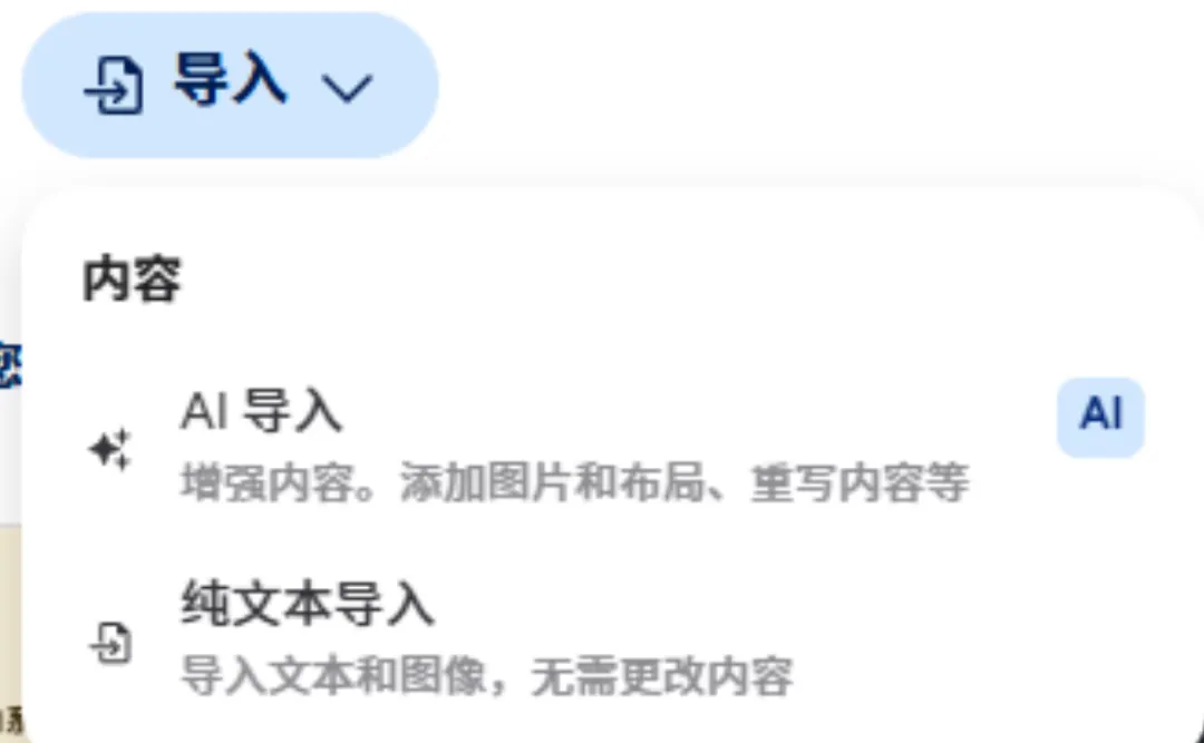 Gamma的“AI导入”功能就是为此而生。它能把乱七八糟的页面,统统“拍平”成纯文字(图片会保留),然后让你用自然语言对话指挥它!