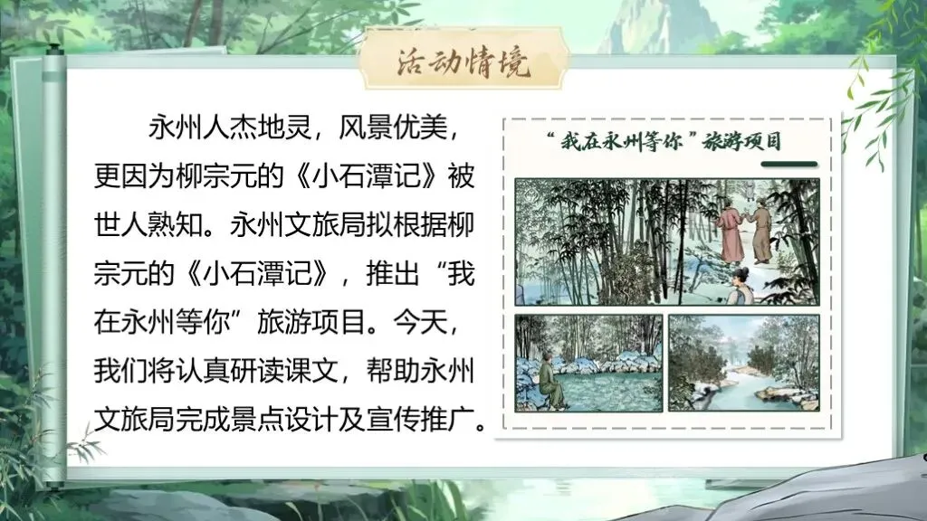 >��【免费教赛PPT模板】八下《小石潭记》PPT展示
