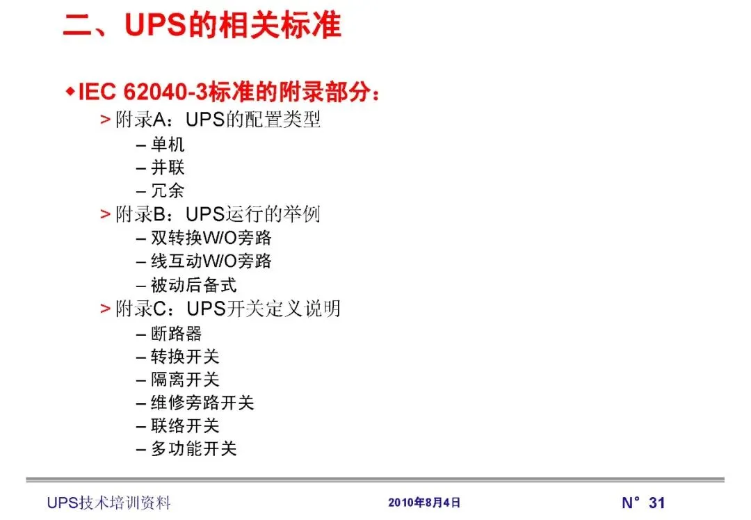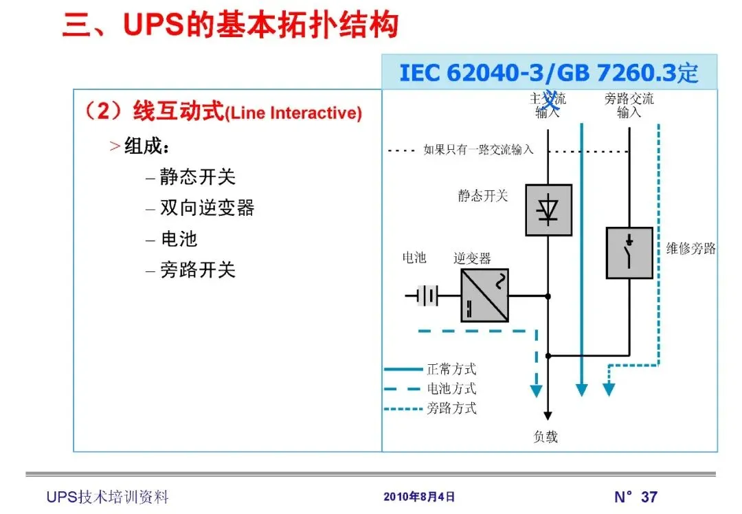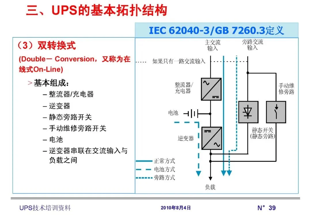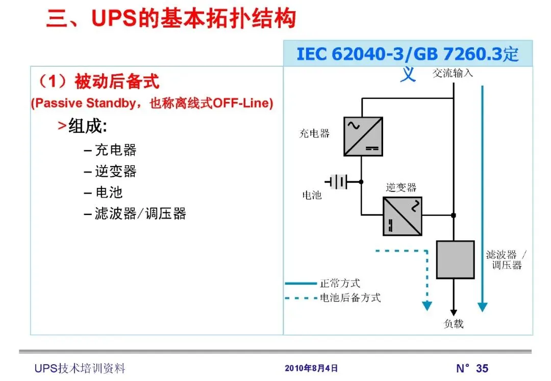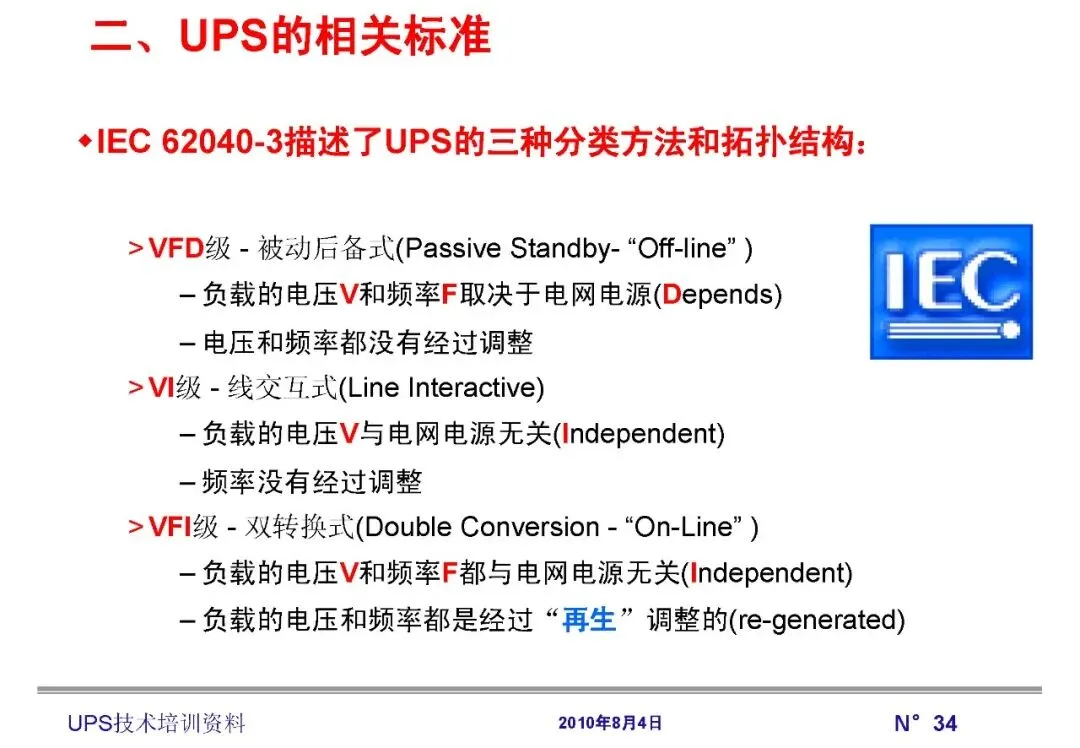 IEC62040-3描述了UPS的三种分类方法和拓扑结构:
