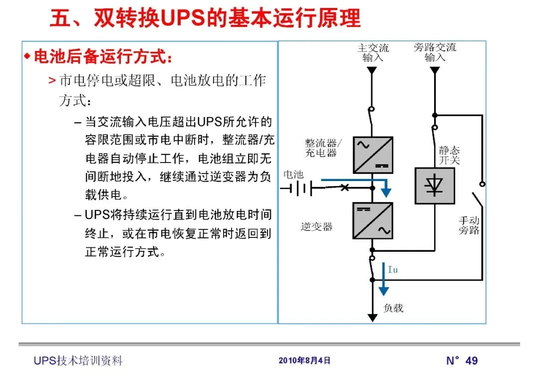 注意:这种类型的UPS常常被称作“在线式”,这表示负载由逆变器连续供