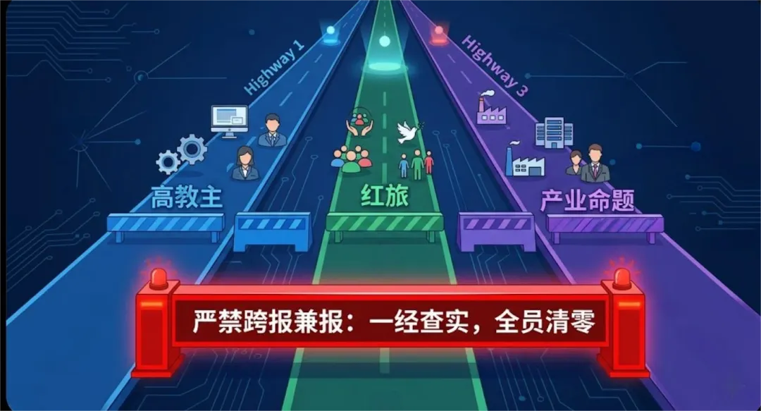 大赛系统查重 + 人工审核双重严查。一旦发现跨赛道兼报,直接取消所有参赛资格,无申诉机会!