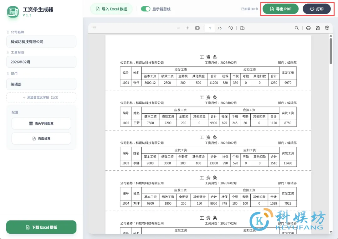 今天科娱坊给大家推荐的这款工资条生成器,简直就是HR的福音。