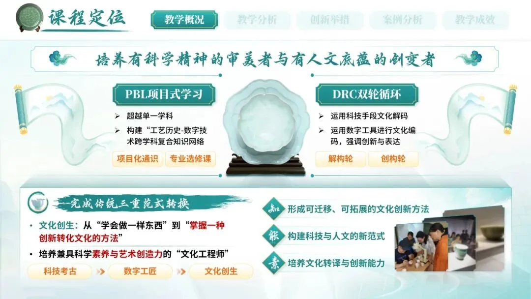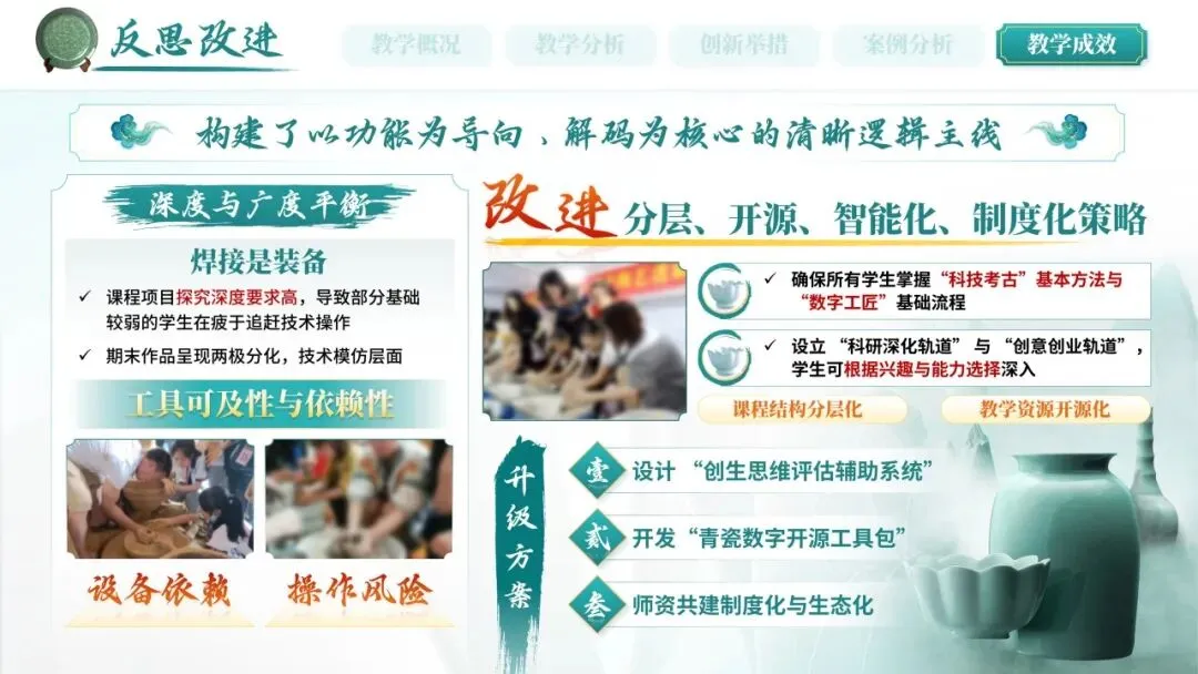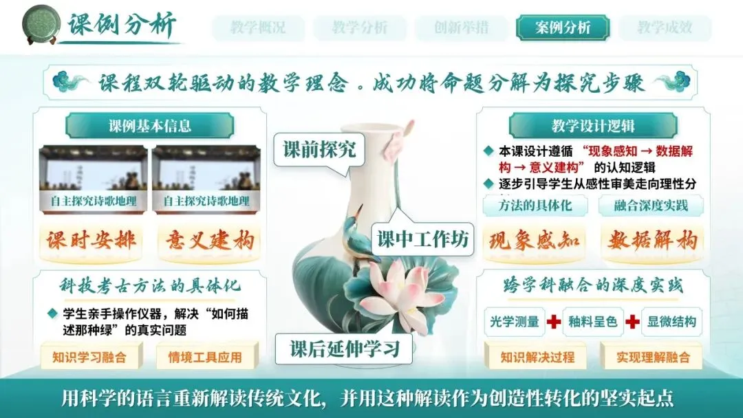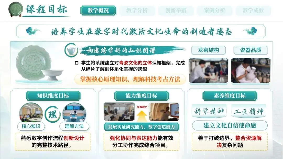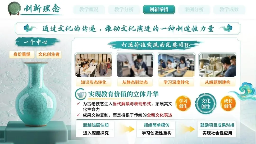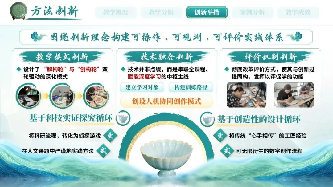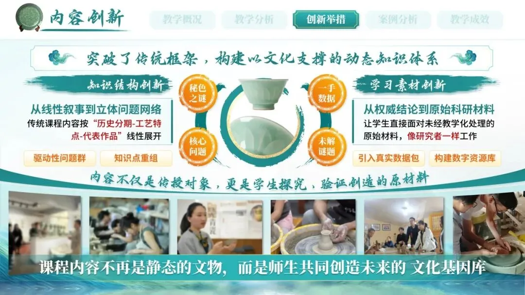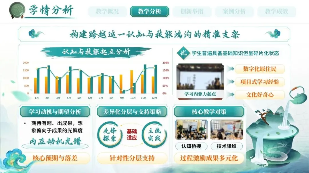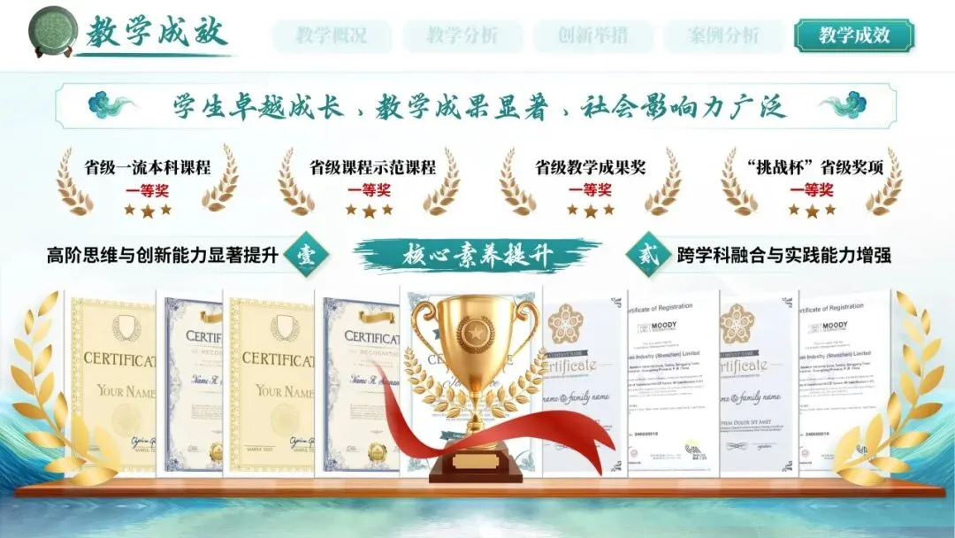 固定四大核心模块:课程概况→教学分析→创新举措→创新成效,层层递进、符合评审习惯。