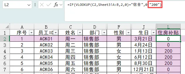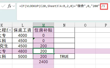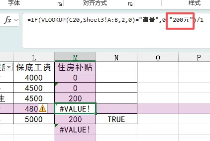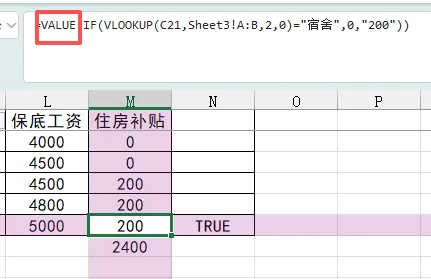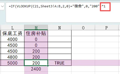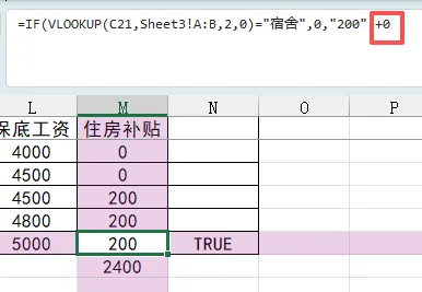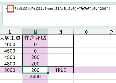 仔细一看,住房补贴的数据是通过if和vlookup函数引用的,在公式中打了双引号。
