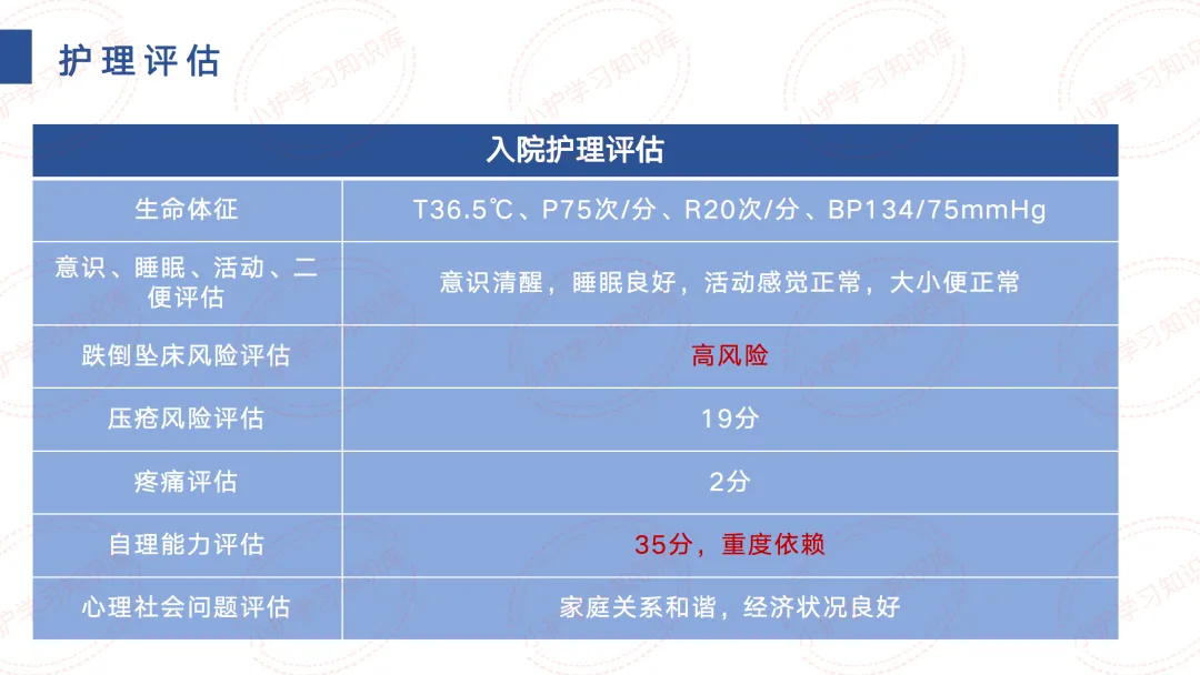 在护理评估方面,患者入院时ADL评分(日常生活活动能力)为35分,评估为“重度依赖”。