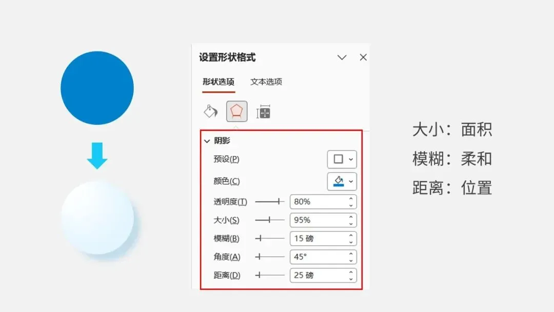 预设:是PPT 里自带、已经调好的阴影效果;