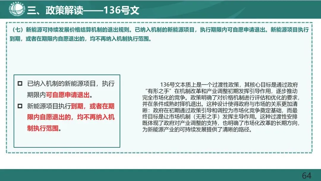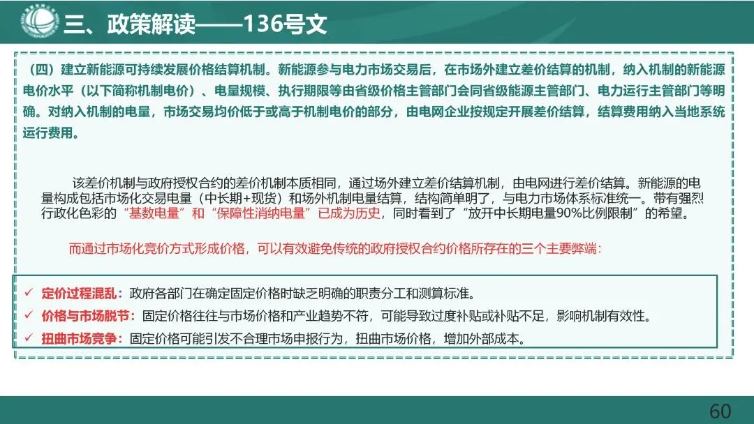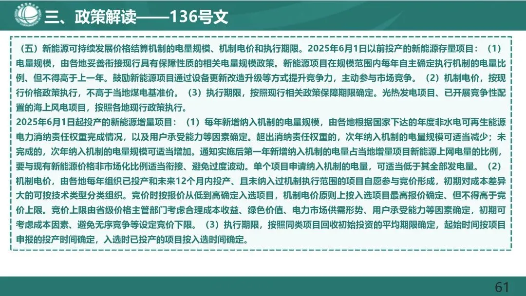 燃煤发电电量原则上全部进入电力市场,通过市场交易在“基准价+上下浮动”范围内形成上网电价。现行燃煤发电基准价继续作为新能源发电等价格形成的挂钩基准。