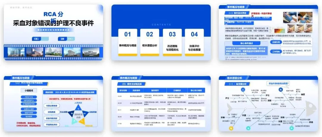 这款RCA分析与改进PPT,以采血差错全流程管控为核心,详细讲解了基于RCA分析的采血全流程风险管控与改进优化的核心内容与实施方法。