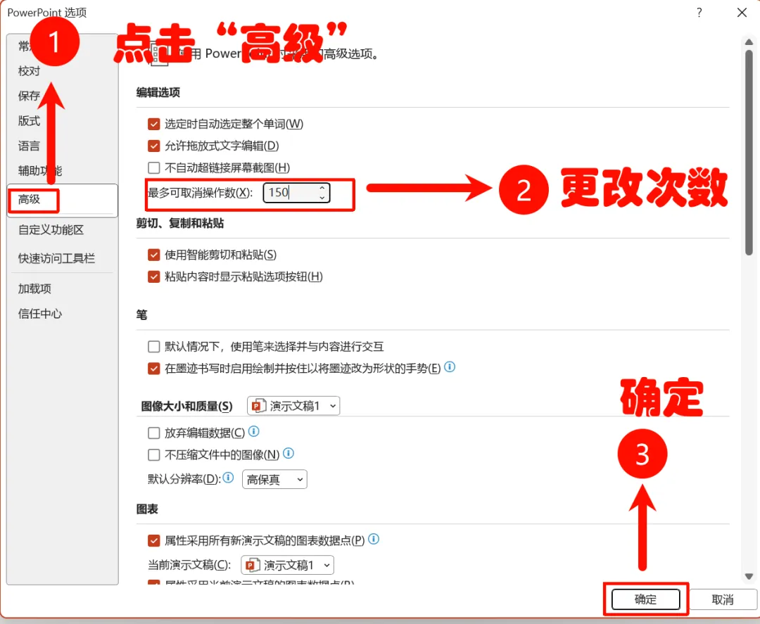 解决方案:【文件】→ 【选项】→ 【高级】→ 找到“最多可取消操作数”→ 点击确定