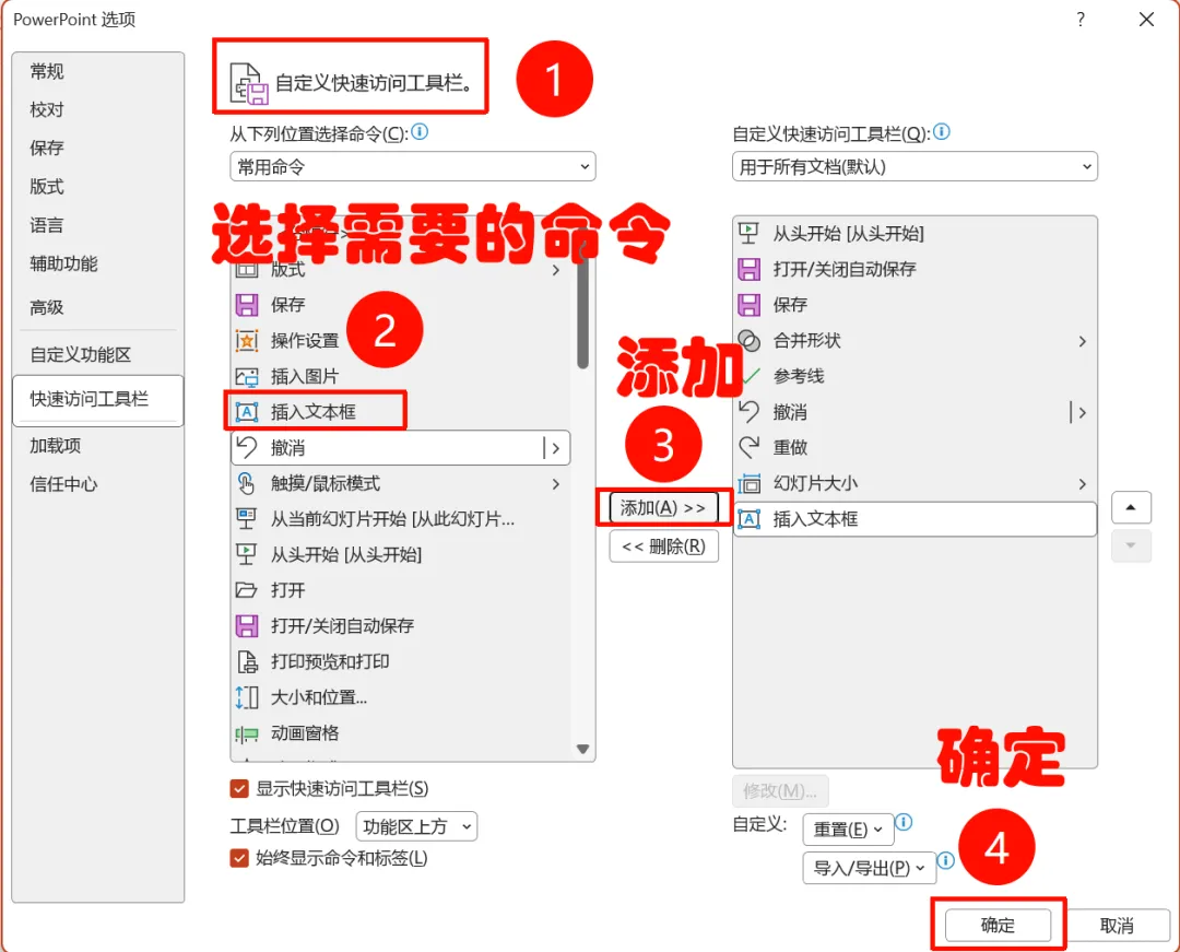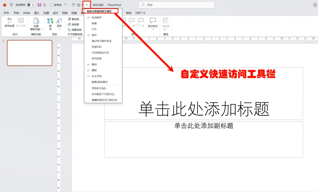 解决方案:自定义快速访问工具栏(PPT左上角的小工具栏)
