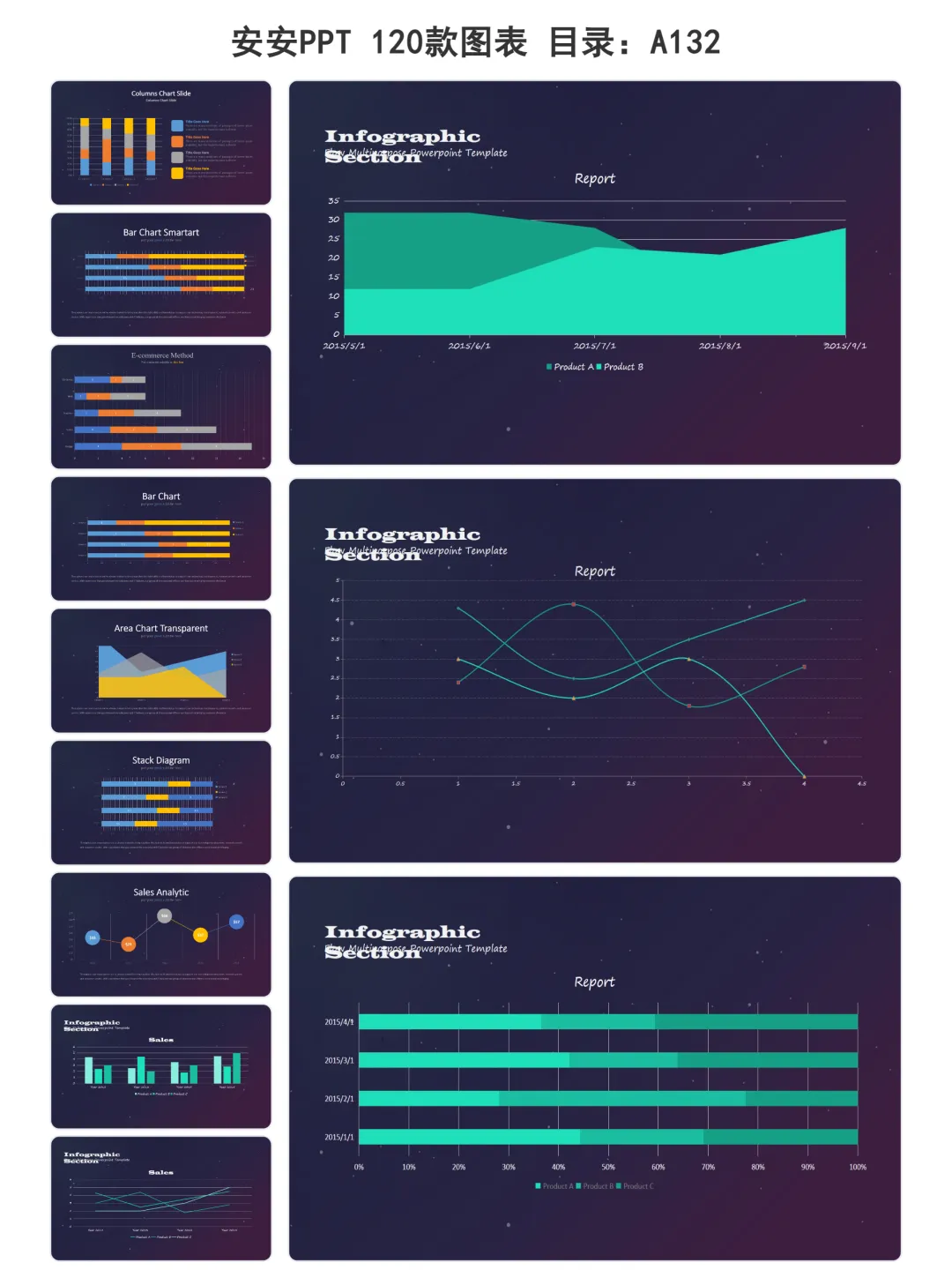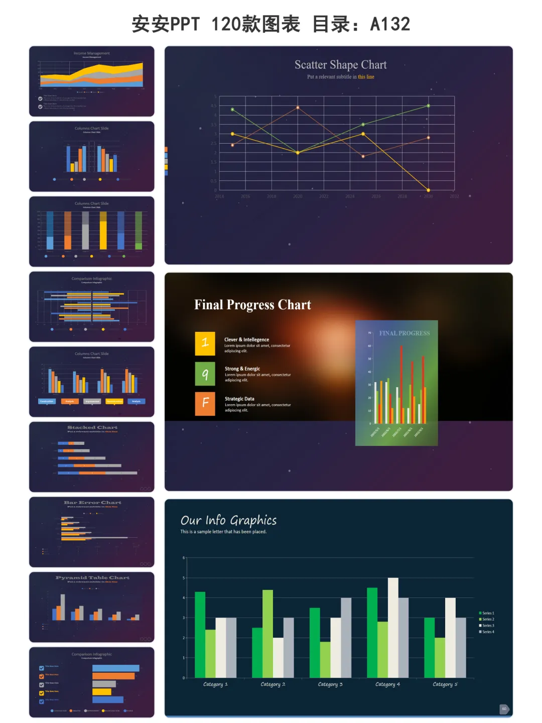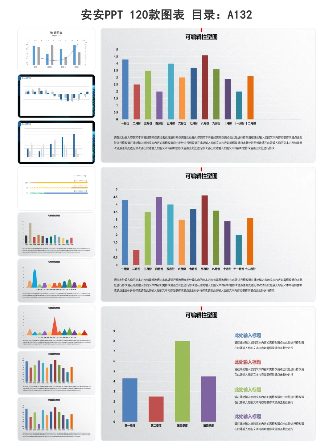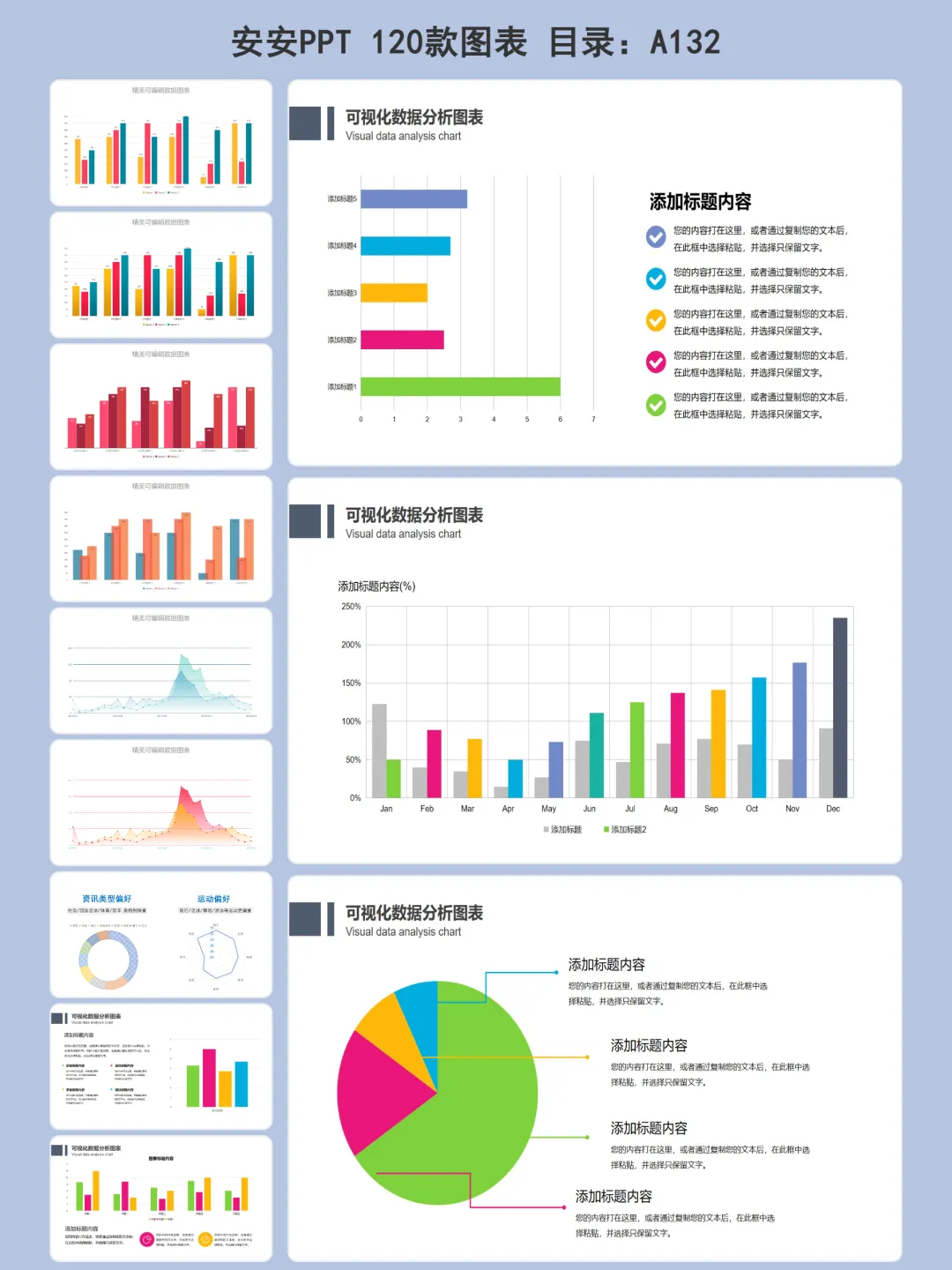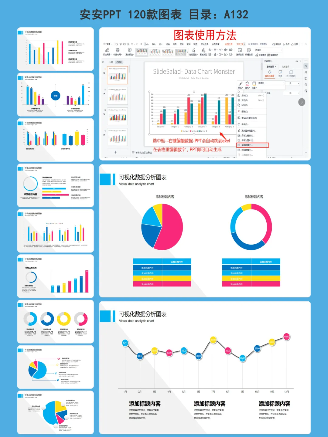 >120款图表,改数据自动生成动态可视化ppt数据图表模板柱形图饼状折线统计分析素材