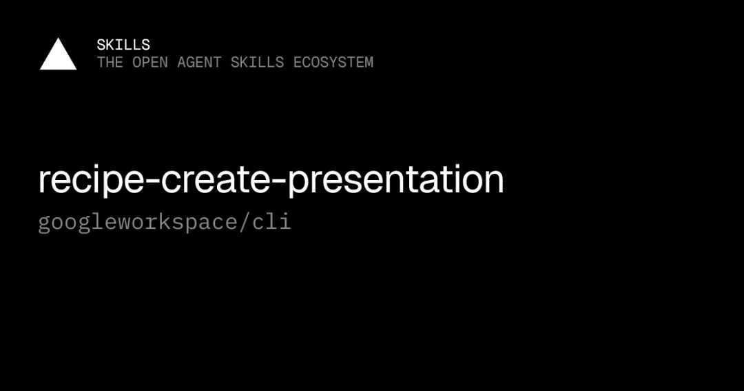 npx skills add googleworkspace/cli@recipe-create-presentation