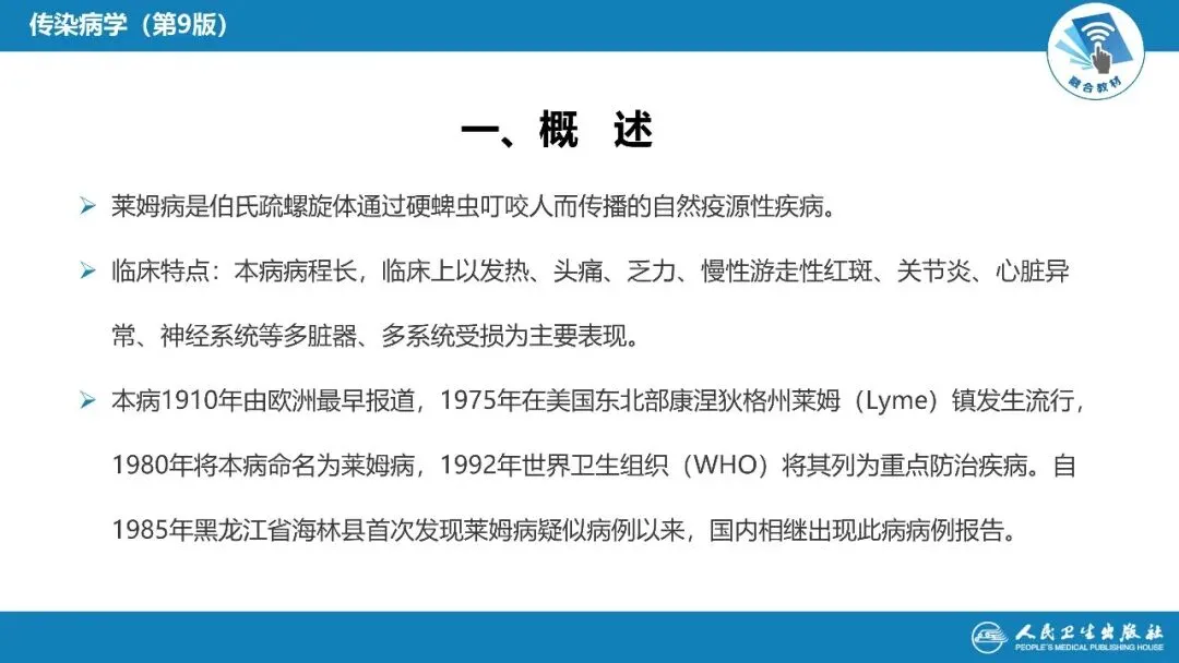 作为临床医护人员,自然疫源性传染病的诊疗知识储备必不可少,莱姆病作为蜱虫传播的典型螺旋体病,累及多器官多系统,病程长且临床表现复杂,更是临床学习和实操的重点!今天为大家带来紧扣第九版传染病学的莱姆病精品整理 PPT,由山西医科大学专业团队编撰,精准覆盖诊疗全要点,也是医护家园网的优质干货!