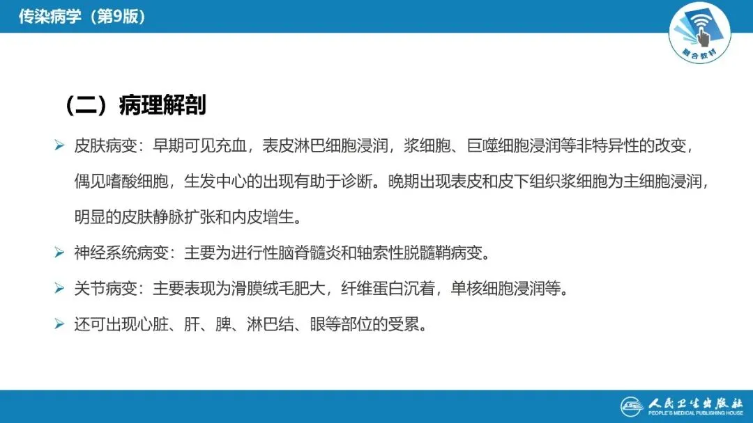 这份 PPT 以十大模块层层拆解莱姆病,从概述、病原学、流行病学,到发病机制、临床表现、实验室检查,再到诊断鉴别、治疗预后与预防,逻辑清晰,考点突出。不仅详细讲解伯氏疏螺旋体的病原特征、蜱虫传播的核心环节,还按病程分三期梳理皮肤、神经、循环、关节等多系统受累表现,搭配临床典型皮损、关节损伤实拍图,直观易懂。