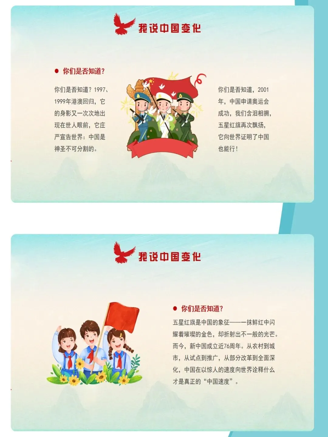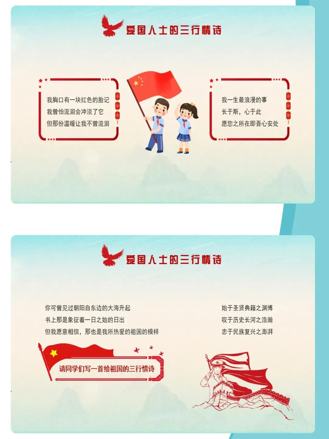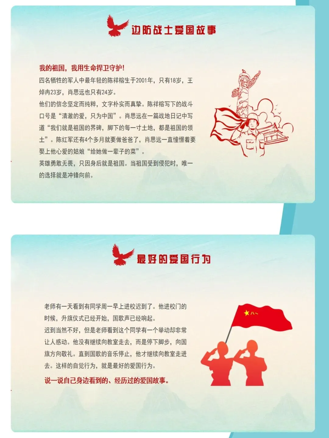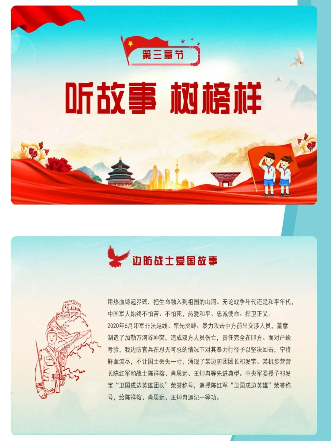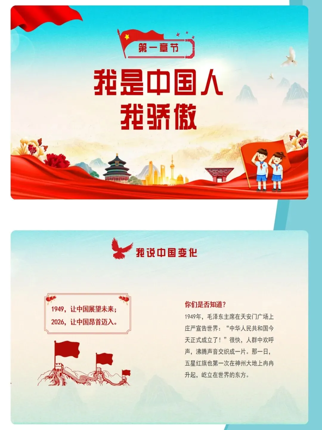 爱国主义,是中华民族精神的核心,是流淌在每一个中国人心中的热血与信仰。课件通过梳理新中国成立76年来的辉煌历程,结合袁隆平、中国航天人、卫国戍边英雄等时代楷模的感人事迹,深刻诠释“清澈的爱,只为中国”这一动人誓言。文章从历史回望、榜样力量、青春担当三个维度,引导青少年厚植家国情怀,树立远大理想,在新时代的征程中,以青春之我,建设青春之中国。