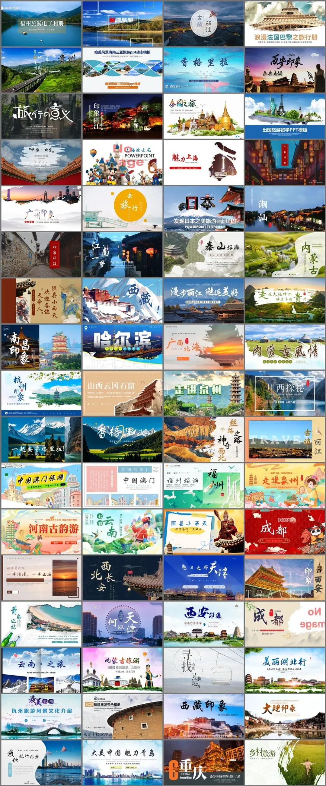 包括了:福州旅游电子相册PPT、新疆旅游PPT、古镇丽江PPT、浪漫法国巴黎之旅行册PPT、香格里拉PPT、西安印象PPT、旅行的意义PPT、泰国之旅PPT、魅力上海PPT、广州印象PPT、潮汕PPT、西藏PPT、内蒙古PPT、广西北海PPT、内蒙古风情PPT、杭州印象PPT、山西云岗石窟PPT、走进泉州PPT、川西探秘PPT、一起去香格里拉PPT、走进泉州PPT、河南古韵游PPT、西北长安PPT、魅力之都天津PPT、青岛之旅PPT、云南之旅PPT、内蒙古旅游PPT、美丽湖北行PPT、西藏印象PPT、大理印象PPT、乡村旅游PPT等。