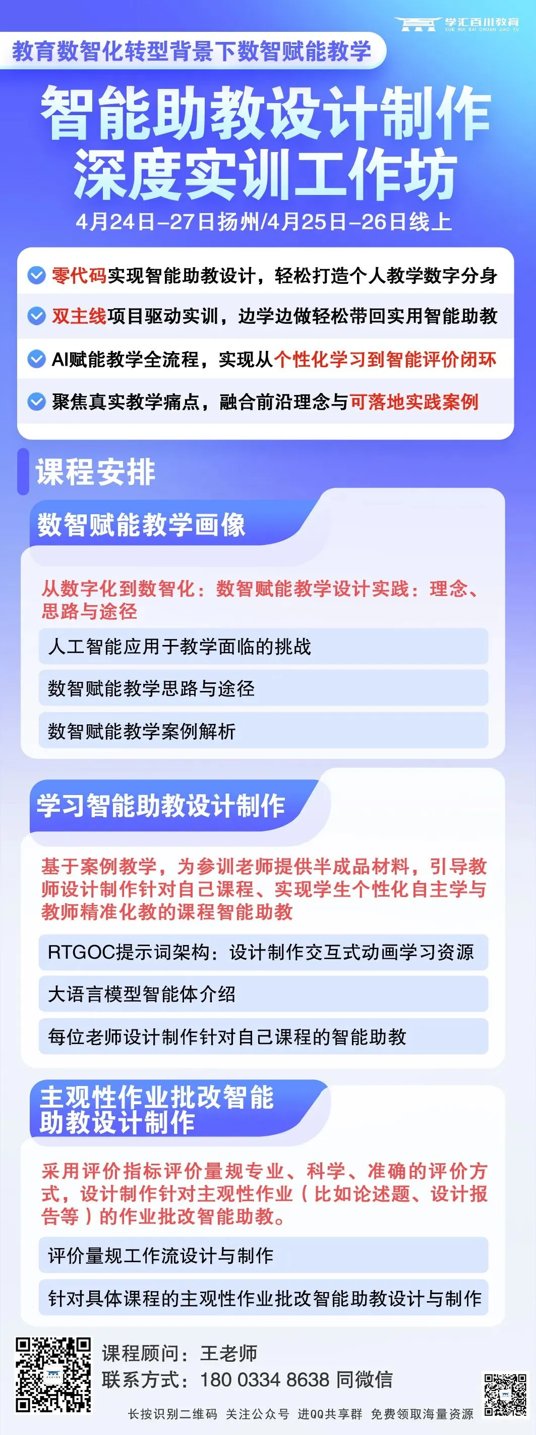 【4月24日-27日•扬州】教育数智化转型背景下数智赋能教学:智能助教设计制作深度实训工作坊