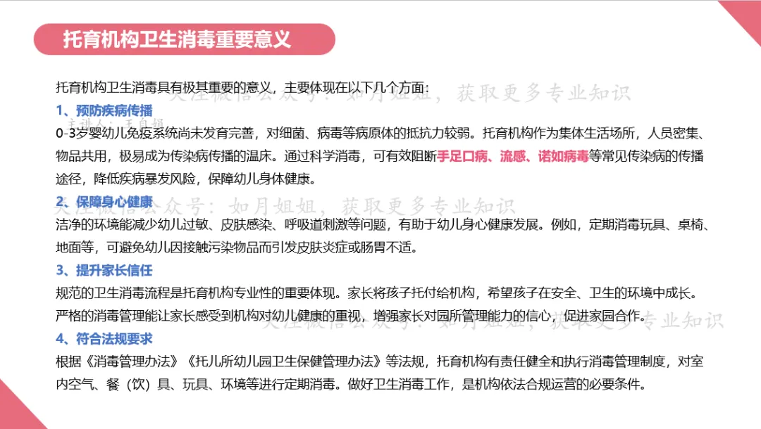 本人在基层妇幼保健机构深耕30余年,从事过儿科临床、儿童保健和辖区公共卫生等工作。当前很多托育机构非常需要托育方面的专业卫生保健知识,为此,我将陆续把自己多年工作经验和精心制作的PPT课件分享给大家。愿为托育、托幼工作尽一份微薄之力。欢迎您关注、转发、留言交流。