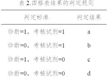 在四格表中,我们使用a、b、c、d来分别代表四种不同的检测结果与临床诊断结果之间的关系。四格表为分析提供了清晰的结构,通过定义明确各个检测结果和诊断结果之间的关系。